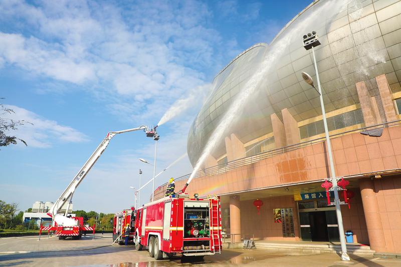 启动仪式前,与会人员观看了跨区域灭火救援疏散综合演练。