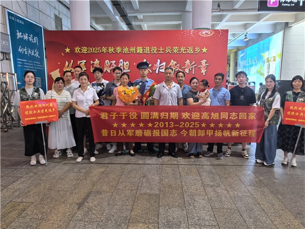 金秋时节,池州籍秋季退役士兵自9月1日起陆续返乡。池州市退役军人事务局组织市军供站、市退役军人服务中心及贵池区退役军人事务局,在池州高铁站设“光荣返乡服务保障点”,迎接子弟兵“戎”归故里。