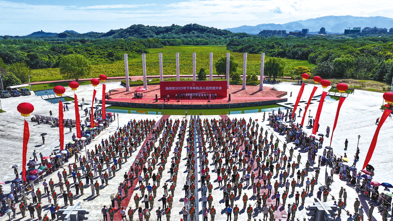 9月11日上午,池州市2025年下半年新兵入伍欢送大会在主城区湿地公园广场隆重举行。市委常委、池州军分区领导崔锐,市征兵领导小组组长、副市长王珏,市征兵领导小组副组长、池州军分区领导韩立民等军地领导出席大会。