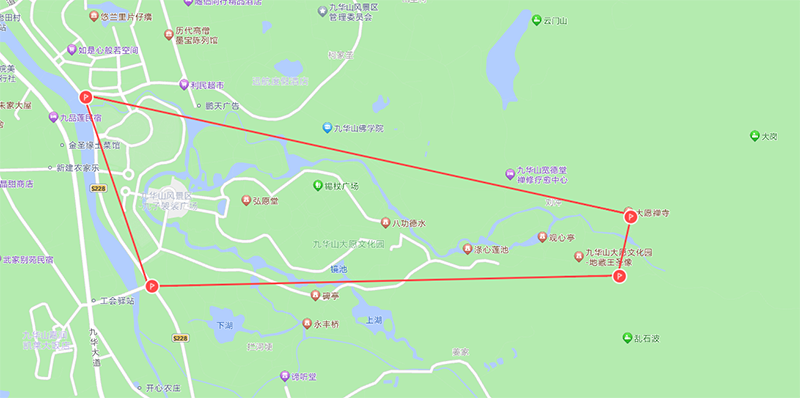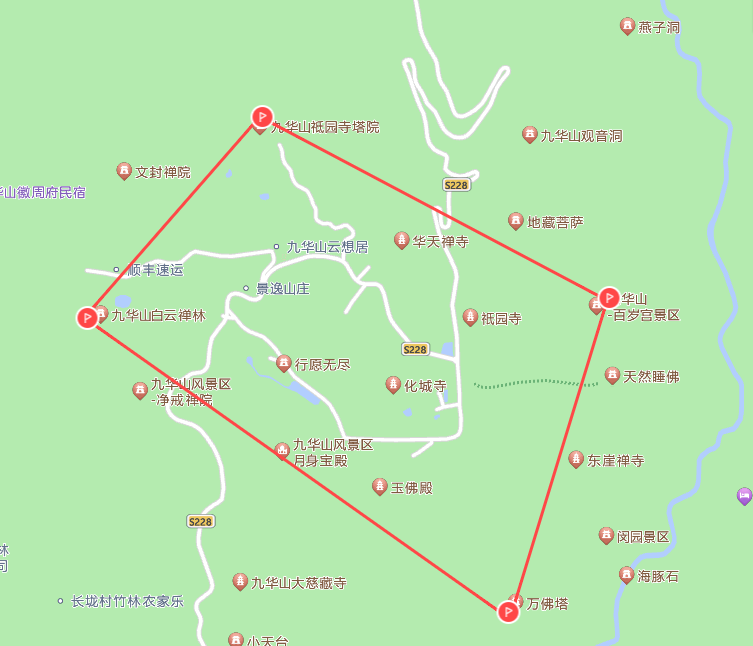 (三)核心景区:九华山白云禅林西侧20米、祇园寺塔院北侧、百岁宫景区东侧、万佛塔南侧四点范围内。坐标点: