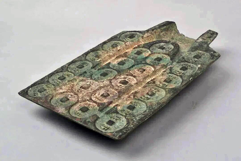 这两件宝贝长什么样?它们造型规整,纹饰精美,整体由铜锡铅合金铸成,呈长方形,上宽下窄,分别排列着23个、15个钱槽,其钱槽、钱文和提耳基本一致,至今保存完好。