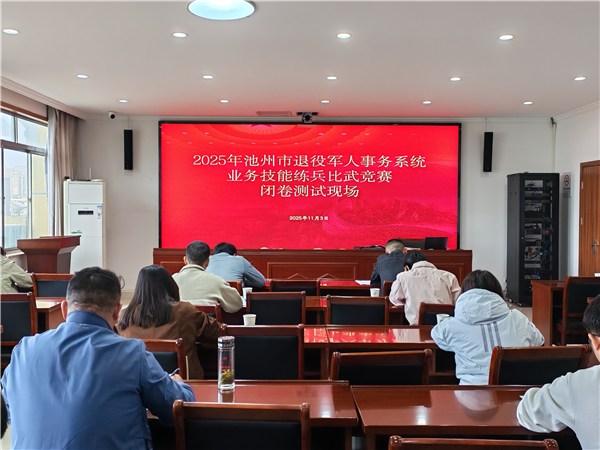 为深入学习贯彻习近平总书记关于退役军人工作重要论述和重要指示批示精神,2025年11月3日至4日,池州市退役军人事务局组织全市系统干部职工开展业务练兵比武竞赛。本次竞赛以“比武竞赛强技能 实战赋能优服务”为主题,来自各县(区)6支代表队18名参赛选手,以及78家退役军人服务站的工作人员,共计110余人参加。市退役军人事务局党组书记、局长赵可静,党组成员、副局长汪鸣驹,市总工会劳动和经济工作部部长张袁出席活动并为获奖选手颁奖。市退役军人事务局二级调研员方昌海担任主评委,并现场点评。
