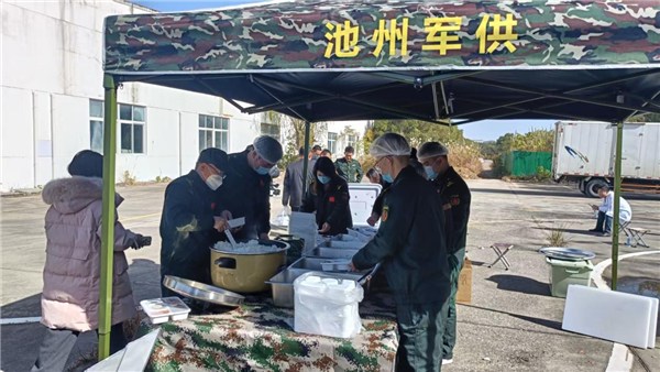 后勤保障一线同样热火朝天。餐饮制作供给组在野外条件下快速搭建临时炊事区,选用保鲜食材和便携野战炊具,洗菜、切配、烹饪、分装等环节有条不紊。队员们在1.5小时内完成50人份“四菜一汤”的制作,通过保温餐箱实现热食精准配送,既保证了营养均衡,又确保饭菜全程热气腾腾,用“暖胃”保障筑牢“暖心”防线。