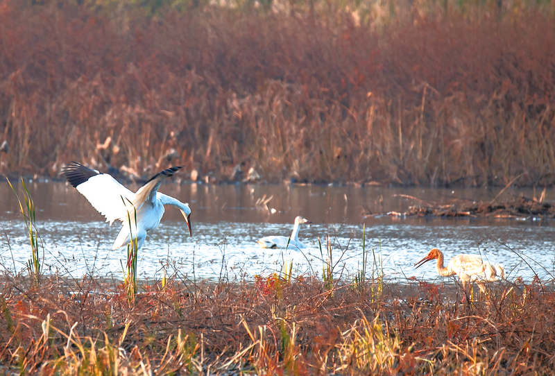 白鹤为鸟类中的古老物种,据考证已在地球上生活了近6000万年,因此被誉为鸟类“活化石”。由于在迁徙途中常常因恶劣天气致其伤亡,加之栖息地被破坏或改变等因素影响,导致种群数量减少。目前全球范围内白鹤数量不到7000只,已被世界自然保护联盟列入濒危物种红色名录,并定级为极危物种。