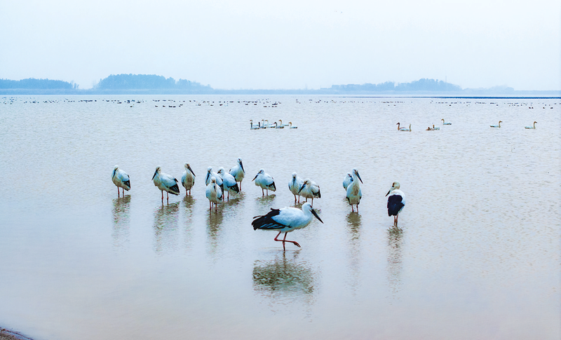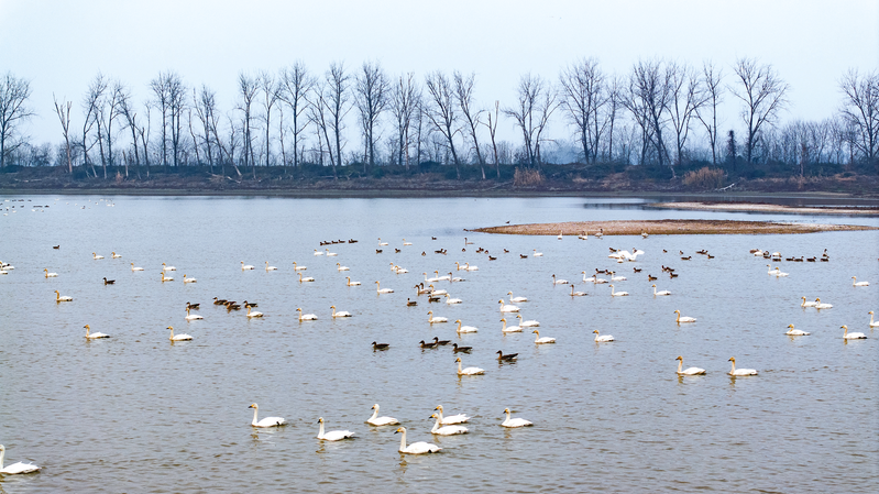 1月2日,贵池区十八索自然保护区,东方白鹳、小天鹅、白琵鹭、白额雁等候鸟在滩涂湿地栖息、觅食。 十八索自然保护区湿地生态环境优越,每年都会吸引数万只候鸟在此停歇越冬。随着气温持续降低,珍稀候鸟成群结队翩然而至,万鸟翔集的壮观场景再次上演,整个湿地进入了最佳观鸟期。
