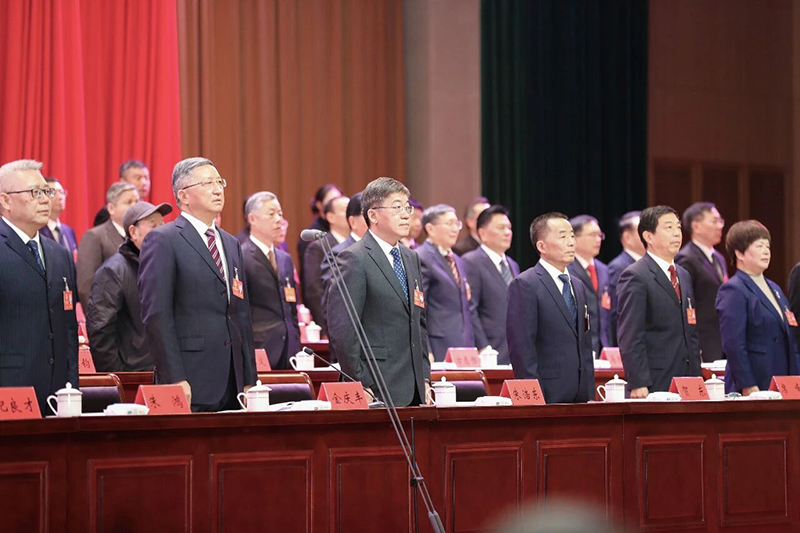 大会执行主席朱浩东、贺东、金庆丰、朱鸿、王家莹、纪良才、王枞红、崔锐、何刚、洪克峰、张勇、方操胜,市政协主席席峰在主席台前排就座。