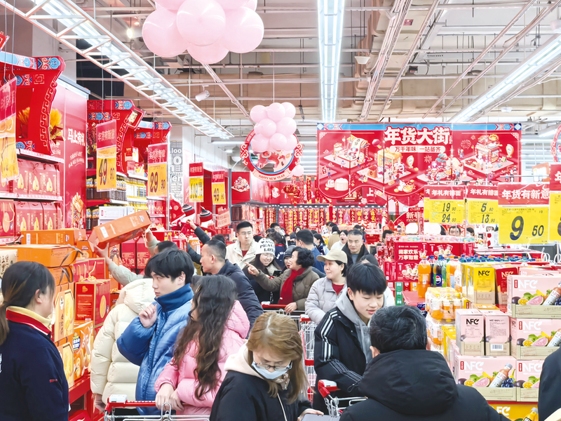 春节临近,我市年货市场呈现购销两旺的红火景象。各大商超提前备足货源,推出优惠促销活动,为市民提供便捷、舒适的“一站式”年货采购体验,营造浓厚的节日氛围。图为市民在主城区大润发超市挑选年货。