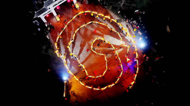 2月23日(正月初七)晚6时,青阳县酉华镇乐元村锣鼓喧天、人声鼎沸,连续多日火热举行的非遗板龙展演活动迎来阶段性收官。