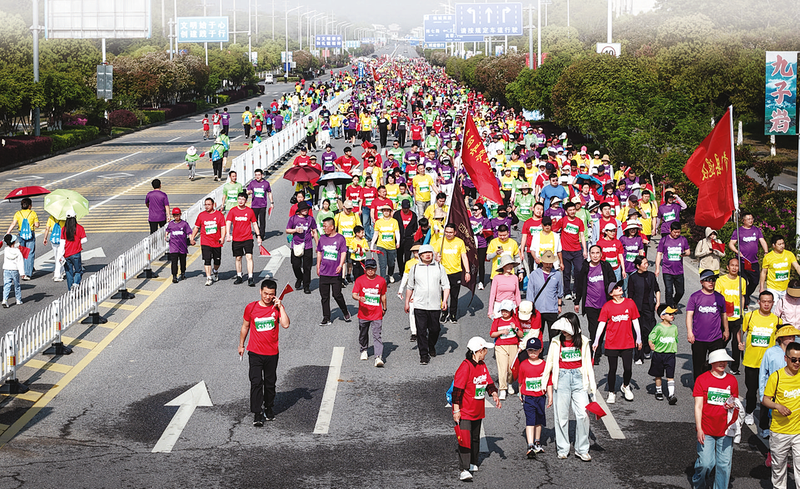 4月19日上午8时,九华黄精2026池州青阳徒步大会在青阳县芙蓉湖公园鸣枪开走。来自全国各地的11000多名徒步与跑步爱好者如约集结,沉浸式感受这座宝藏小城的生态之美与人文魅力。