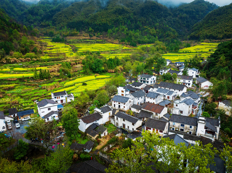春日里的石台白石岭古村落。