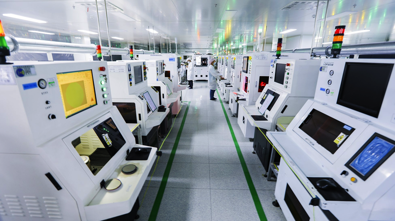 图为安芯电子技术人员在切割车间进行激光切割作业。记者 吴骏 摄