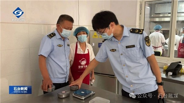 随后,工作人员还对校园食堂的环境卫生、粮油大米等食材存放、食品留样及食品加工等各环节开展全面检查,对发现的问题现场提出整改建议。