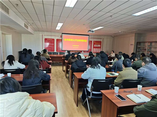 为进一步提升政务公开工作规范化水平,2025年11月26日上午,我市在市数据资源管理局六楼会议室召开全市政务公开业务培训会。各县、区、管委会及市政府相关部门共42家单位业务骨干参加会议。
