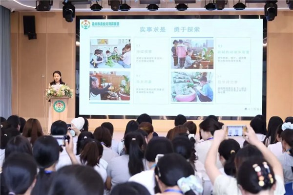 市直幼教集团翠微苑幼儿园姚晶晶园长以《播科学种子 育创新之苗》为主题,分享了科学启蒙引领下翠微苑幼儿园如何有效将游戏和课程融合创新的经验,并从“环境浸润、材料支持、精准指导、协同育人”四个维度分享实践经验,为参会者提供幼儿科学素养培育的可操作、可复制的“游戏化”解决方案。