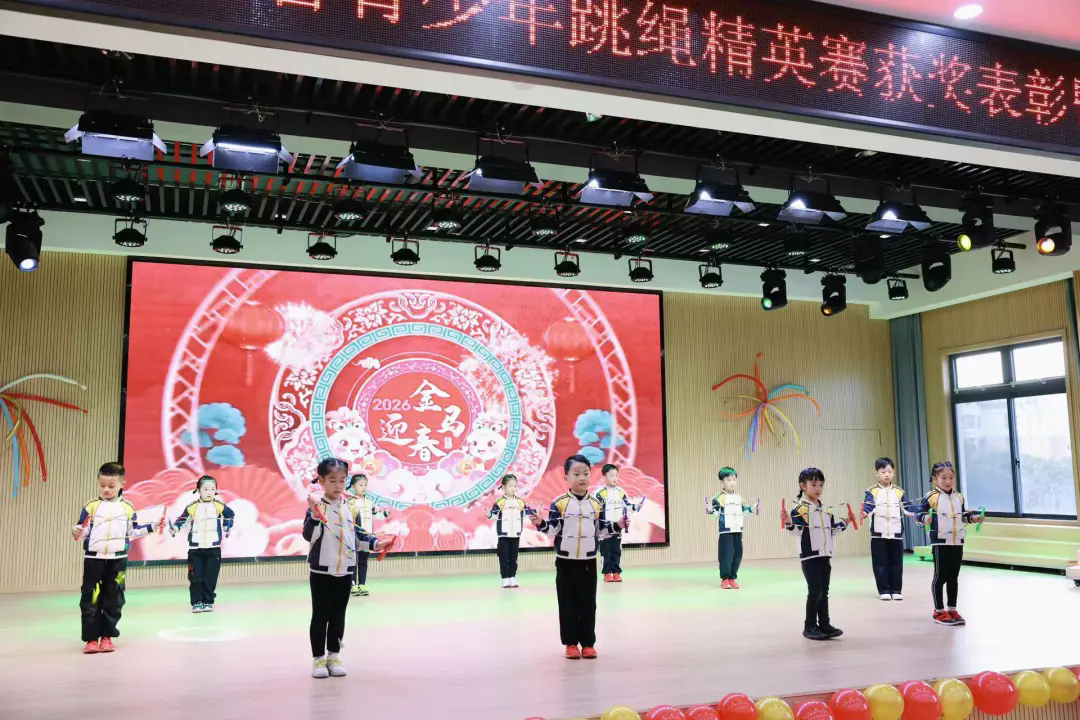 为表彰省跳绳赛事中表现突出的幼儿选手,展现幼儿阳光向上的运动风采与精神面貌,进一步弘扬顽强拼搏的体育精神,12月31日,市直幼教集团隆重举办“童心跃动绳飞舞 阳光运动向未来”——2025年安徽省青少年跳绳精英赛获奖表彰暨风采展示活动。