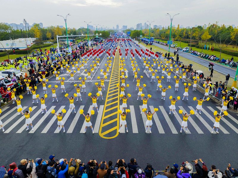 7时左右,主城区秋浦东路已成欢乐的海洋,在动感的音乐声中,龙舞表演《龙腾狮跃迎盛世》、啦啦操《加油加油》、扇舞《走向辉煌》等群众体育项目轮番上演,将赛前氛围拉满。