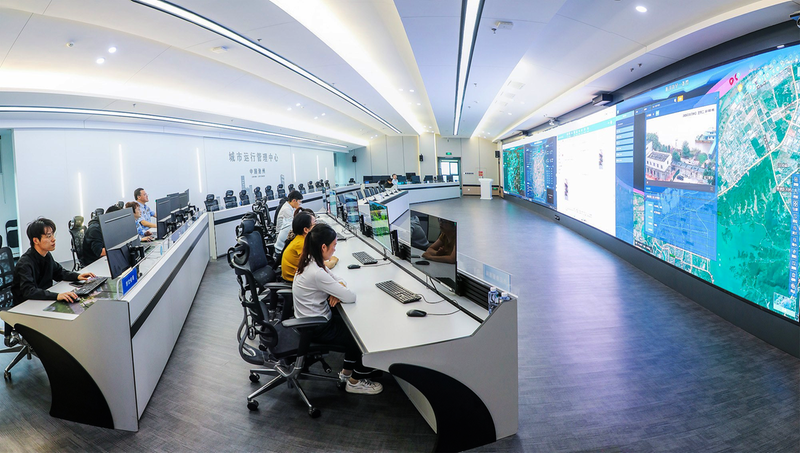 图为市数字城市运行管理中心指挥大厅。记者 吴骏 摄