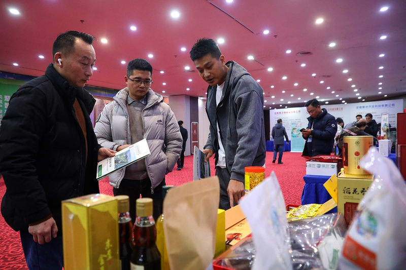 图为鳜鱼和农特产展区工作人员向与会嘉宾介绍产品。记者 张延鹤 摄