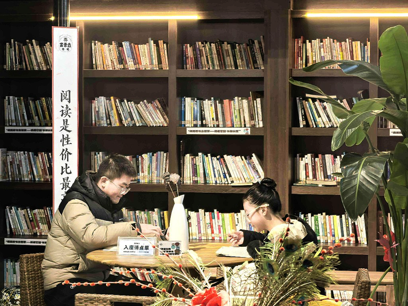 作为市图书馆的分馆之一,富景垚书咖跳出传统图书馆“藏书借阅”的单一模式,融入咖啡、社团等多元文化,并借助齐街原创谷的工艺美术作坊,创新实施“阅读+”,打造兼具阅读乐趣和艺术体验的文化驿站。“我们会提前在小红书、抖音等平台发布分享会的主题信息,感兴趣的朋友都可以报名参与。”齐街原创谷艺术总监华俊介绍,“每周一次,主题可以是阅读,也可以是电影、穿搭,大家在一起畅所欲言,氛围非常好。”这样的多元阅读场景,正是池州全民阅读从“单一读书”升级为“全域覆盖、线上线下联动”文化生态的生动缩影。