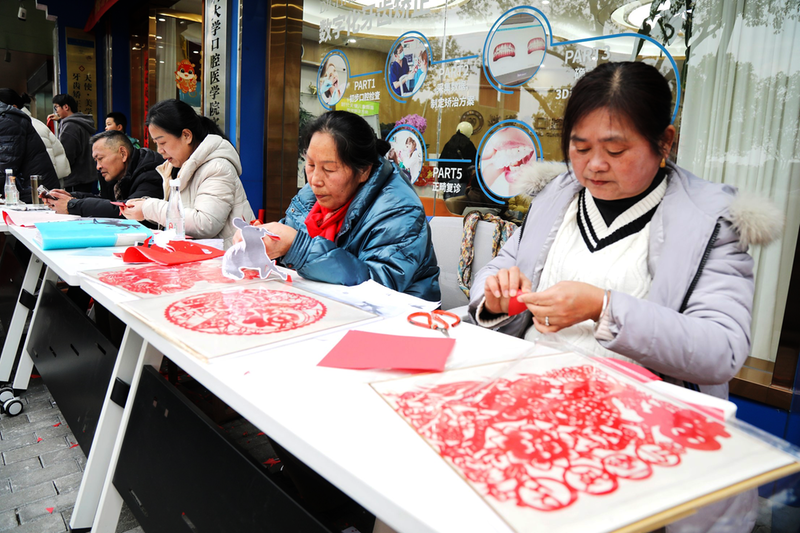 随着春节临近,主城区街头处处洋溢着浓郁的节日氛围。2月4日立春这一天,位于东湖路的姚满霞口腔医院组织多名剪纸艺人、书画家现场剪纸、书写春联,免费赠给市民。