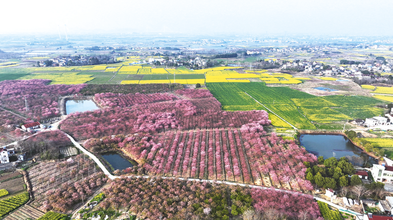 阮桥社区樱花林航拍。记者 杨锋 摄