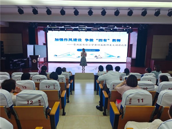 五月的暖阳浸润书香,朗诵的清音激荡心灵。5月30日下午,贵池区实验小学以“弘扬教育家精神,争做新时代大先生”为主题,隆重举办第四届教师美文诵读比赛。活动由备课组长王丽老师主持,十六组参赛教师登上舞台,用声音诠释文字之美,用深情传递教育之魂,为全校老师奉献了一场震撼心灵的文化盛宴。
