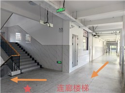 2、3、4、5四个楼层的东边两个班级由东边楼梯下楼,西边三个班级由西边楼梯及贵恒楼与中和楼之间楼梯下楼,下楼后从教学楼与实验楼中间通道前往田径场。由室外篮球场进入田径场。