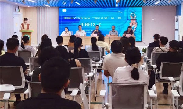 10 月 10 日下午,池州市青少年游泳 “雏鹰计划”第二期开班仪式在市直幼教集团三台山幼儿园如期举行。市体育服务中心主任戴军、市直幼教集团主任刘志峰、竞帆游泳培训中心董事长李胜白、项目相关负责人及全体学员家长出席开班仪式。