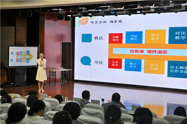 在课堂教学现场课上,来自各县区的4名优秀教师采取同课异构的形式纷纷登台献课。他们心中有课标,脑中有教材,眼中有学生,以生动的语言、富有创意的教学方法和深入浅出的讲解,展示了不同特色不同风格的精彩课堂。